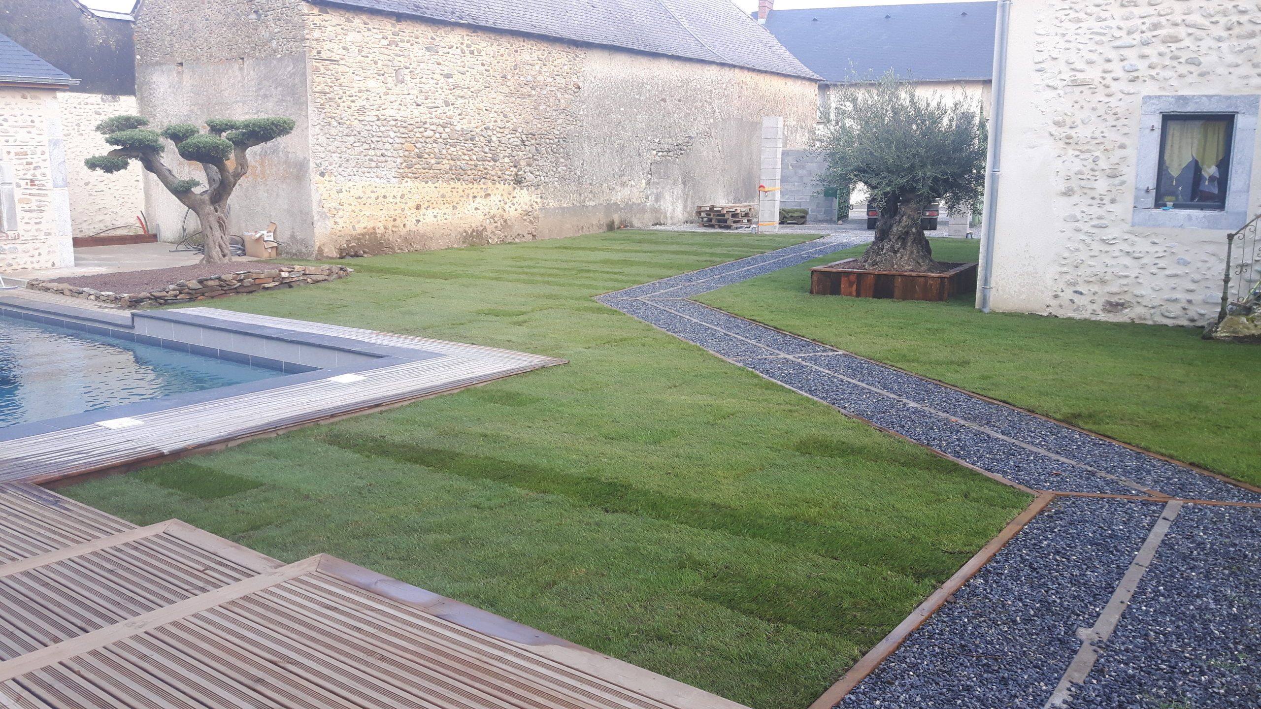 Plus de profondeur et de perspective, l’engazonnement mettra en valeur vos plantations.